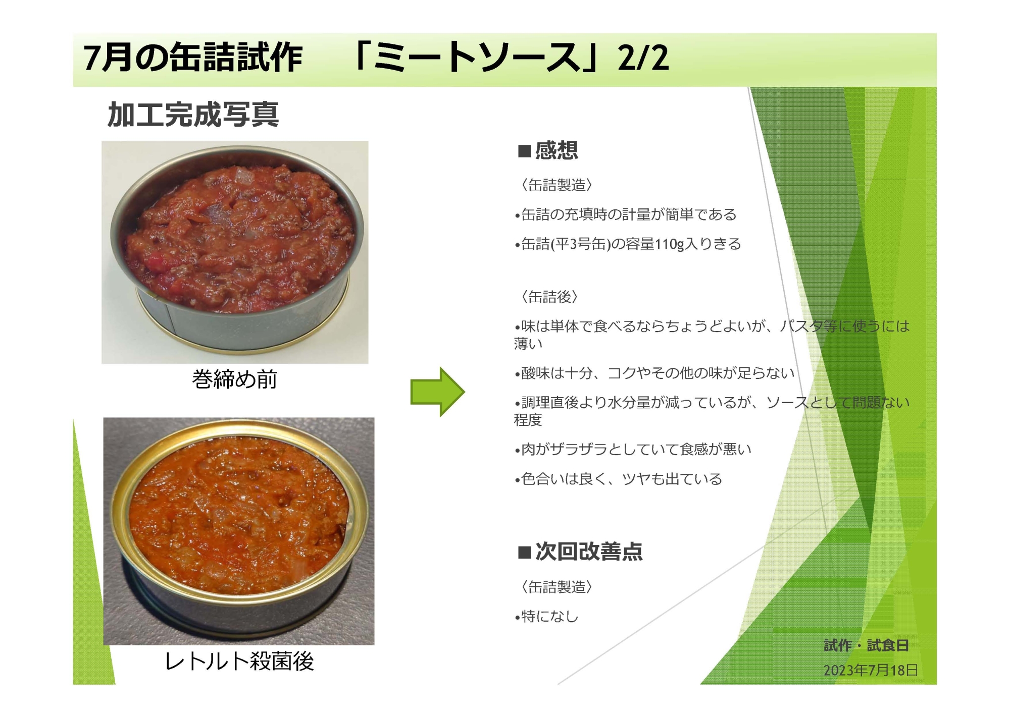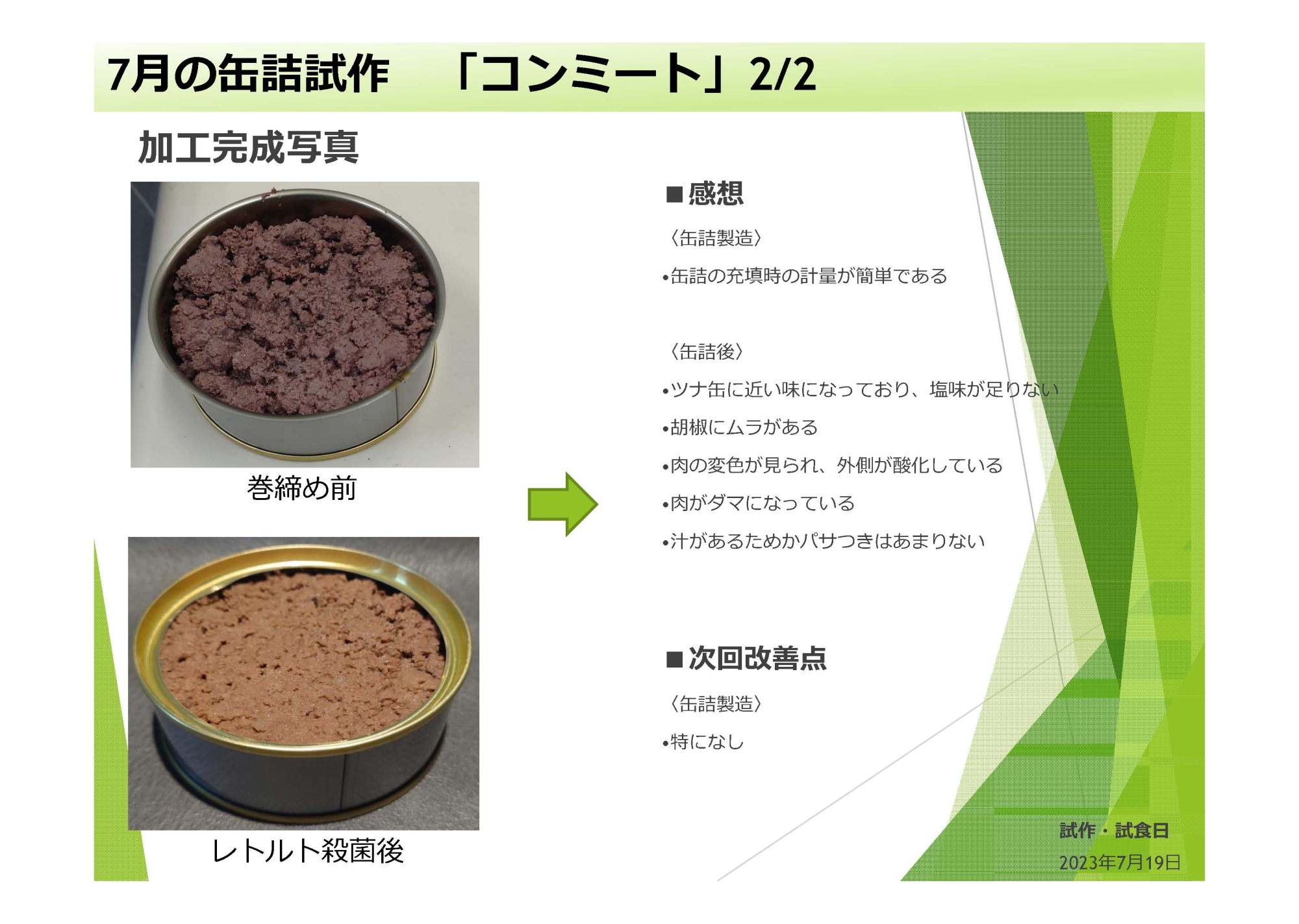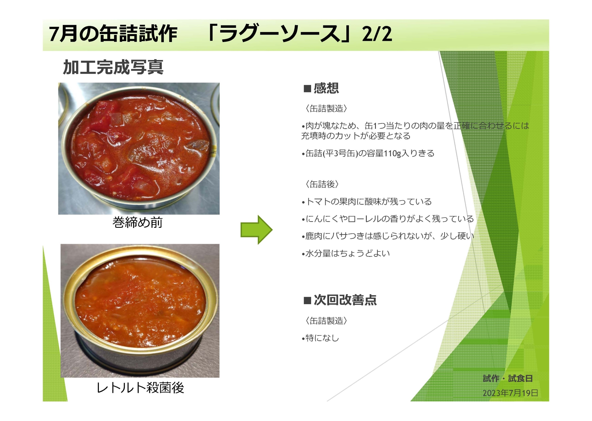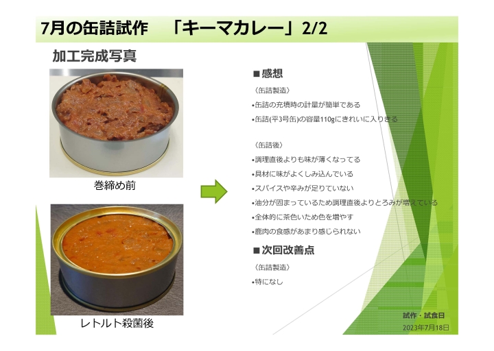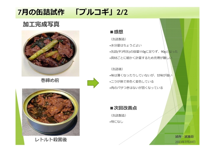 缶詰製品の試作