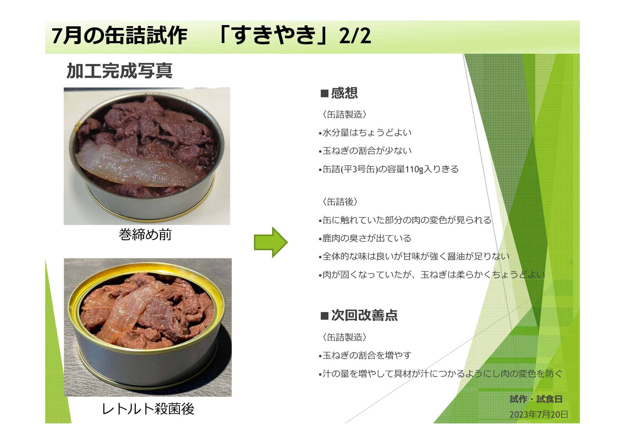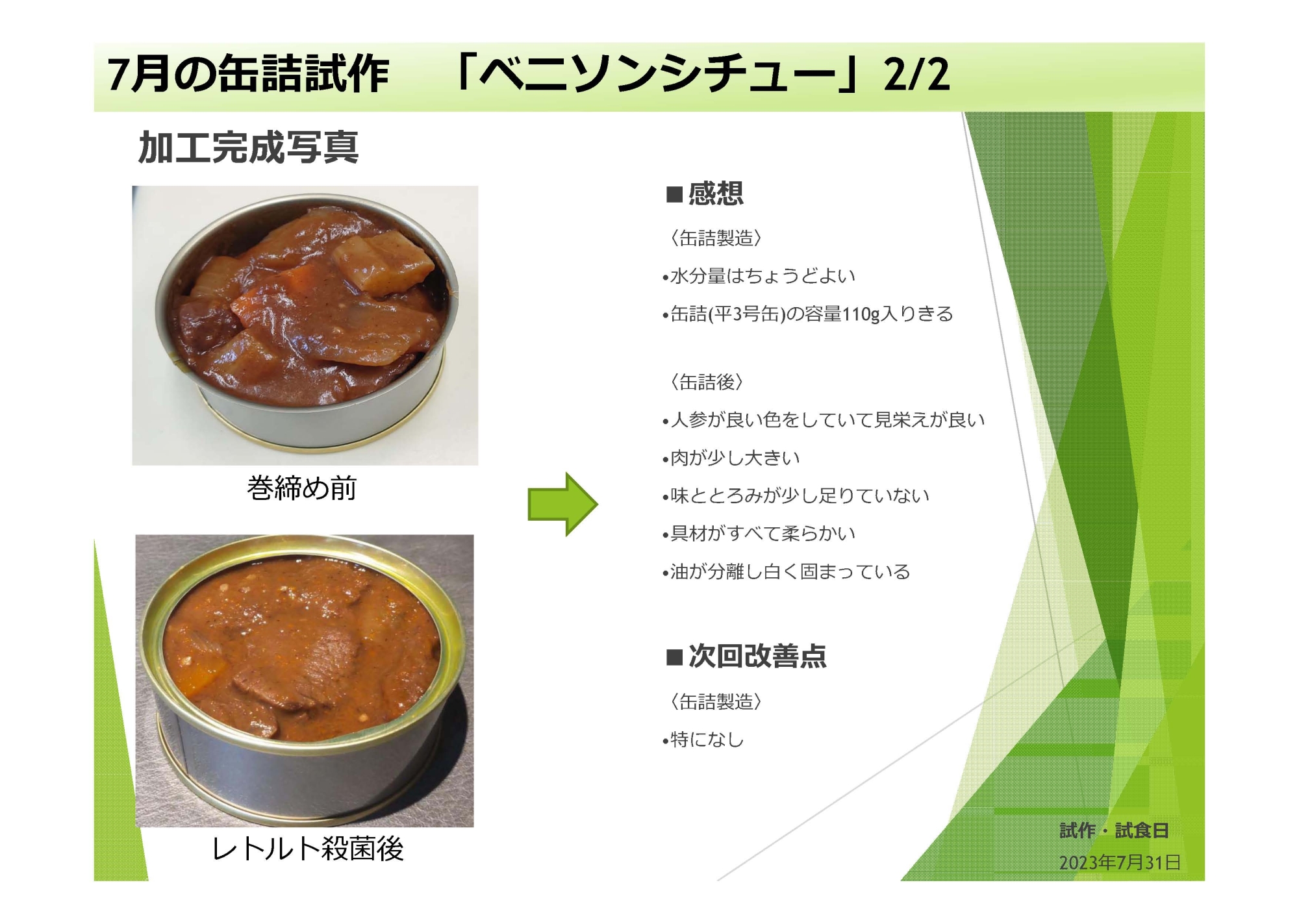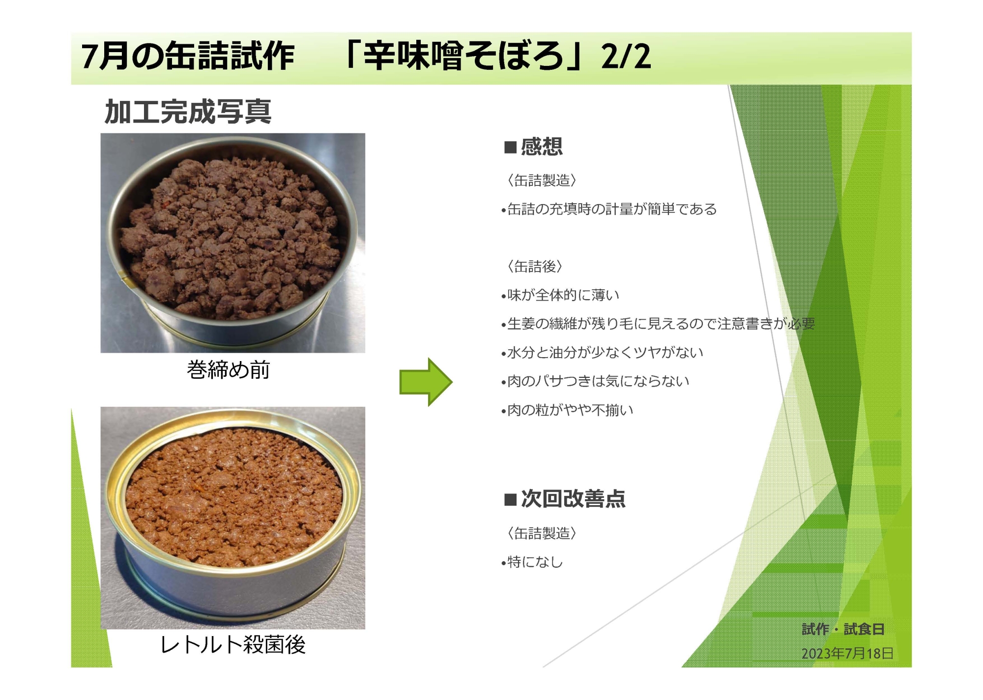 缶詰製品の試作